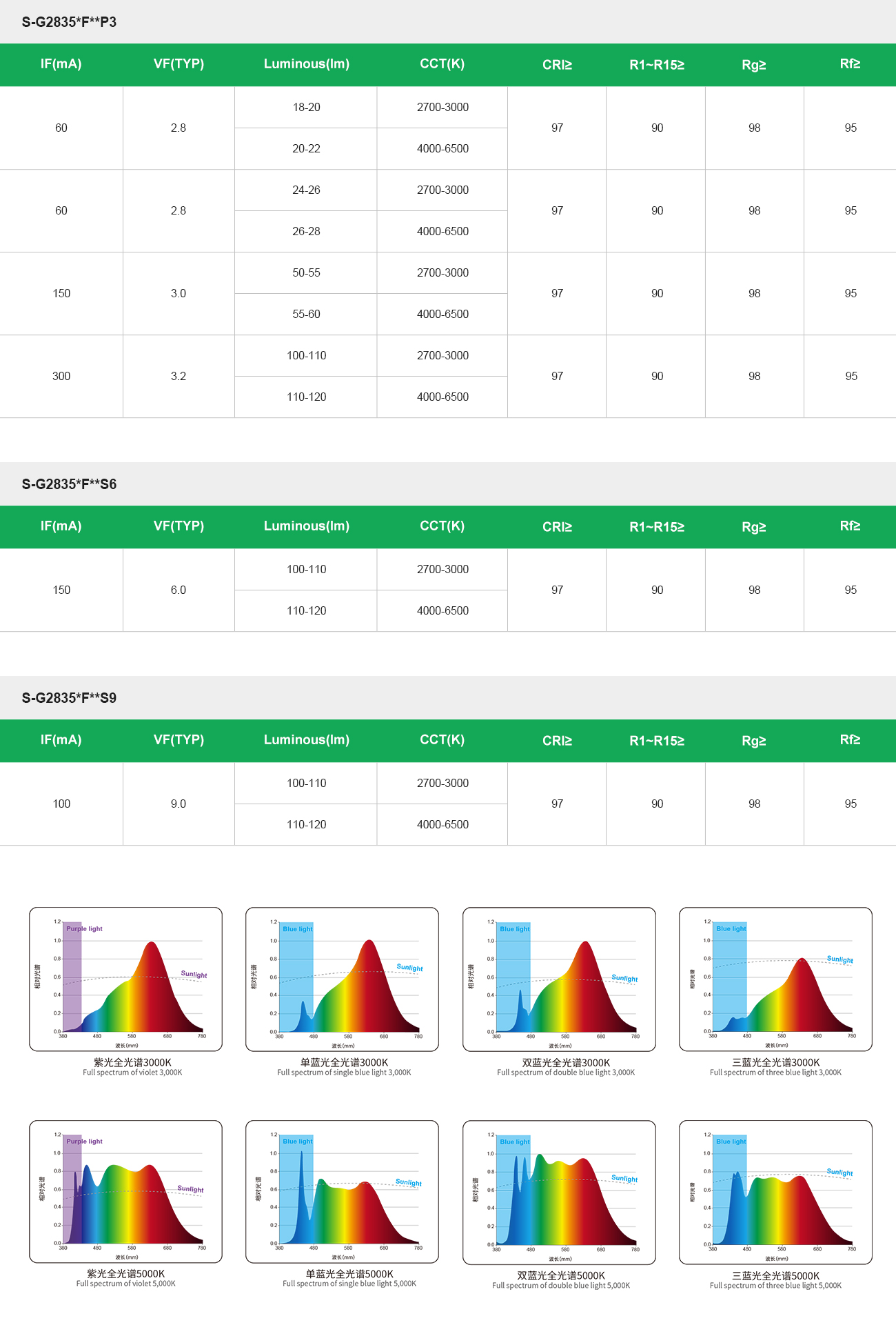 ·CRI≥97、R1~R15≥90、Rg≥98、Rf≥95