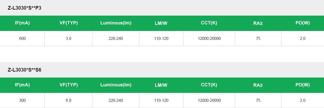 ·功率:2.0W,平面式白光LED